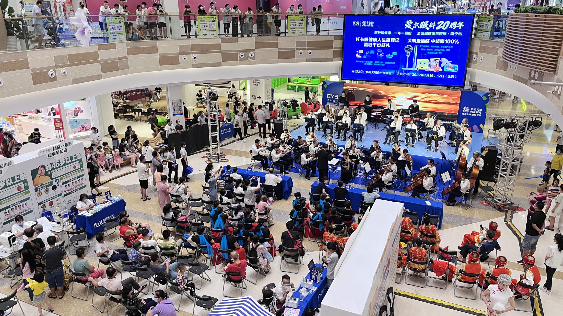 广西南宁讯 7月16日至17日,“呵护眼健康,一年一眼检”科普巡展活动在南宁市大唐天城举办。这是爱尔眼科成立20周年之际,积极响应《“十四五”全国眼健康规划(2021-2025年)》要求而开展的全国眼健康科普巡展活动南宁站。活动覆盖了全年龄段人群,以科普宣传、义诊、互动体验的形式以及精彩纷呈的活动和直播,加强全民眼健康科普宣传工作。