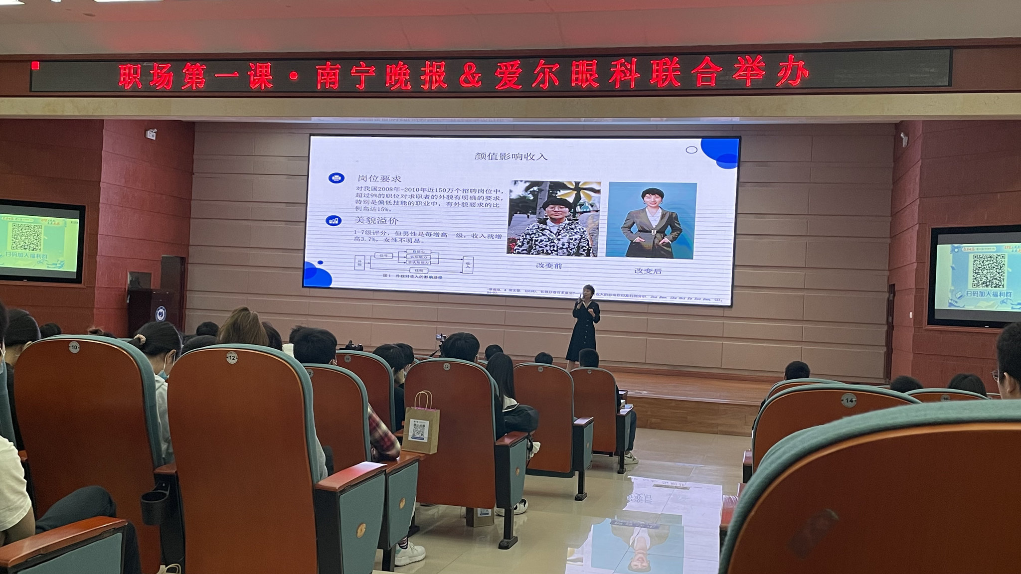 10月26日,由南宁晚报与南宁爱尔眼科医院联合开展的“眼里有光芒,职场不迷茫”职场第一课·南宁站活动在南宁学院举办。